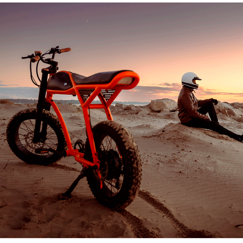 Todoterreno pero urbano. Compacto pero generoso. Vintage pero moderno. Ringo es una elegante bicicleta compacta de aspecto postapocalíptico, hecha para la ciudad y la carretera con versatilidad para todo terreno. Esta práctica bicicleta de dos plazas tiene un aspecto de cabeza giratoria, que te permitirá ser el centro de atención de la carretera, mientras conduces con alguien en la parte trasera. Esta bicicleta combina una gran apariencia, una posición cómoda y las características de la última tecnología inteligente de Rayvolt.