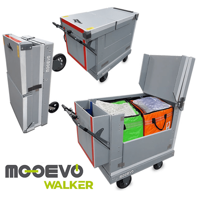 MOOEVO WALKER es un carrito plegable manual de reparto y transporte, que tiene una gran capacidad. Es ideal para llevar en las furgonetas de delivery, para ayudar a los repartidores en su trabajo. Se pliega y ocupa muy poco espacio, y está diseñado para poder ser utilizado tanto en interiores como en la calle. Viene equipado con ruedas grandes, para minimizar el ruido y ser más cómodo su uso en exteriores.