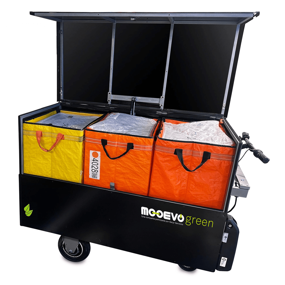 MOOEVO e-WALKER es carrito eléctrico de transporte y reparto flexible, que permite transportar grandes volúmenes de manera cómoda y eficiente. Permite varias configuraciones según las necesidades del cliente: delivery, hostelería, campos y fincas, recogida de residuos y basuras, etc.