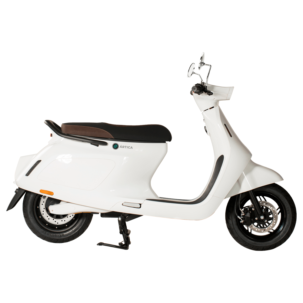 La Wellta Artica, con un diseño retro muy innovador, es un revolucionario scooter eléctrico ágil y cómodo con una potencia equivalente a 125cc y que se conduce con carnet de coche. Tiene capacidad para incluir dos baterías bajo el asiento, lo que le ofrece una autonomía de hasta 70km.