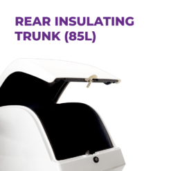 Cargoo cuenta con una cesta frontal y un gran baúl trasero para poder transportar tantos objetos se desee. Sus dimensiones y su alta capacidad la convierten en la scooter perfecta para usos comerciales. Su cestra frontal tiene una capacidad de hasta 25 litros, mientras que su baúl trasero permite hasta 51 litros. Nacida para gestiones de entrega, este ciclomotor eléctrico es lo que necesitas en tu negocio.