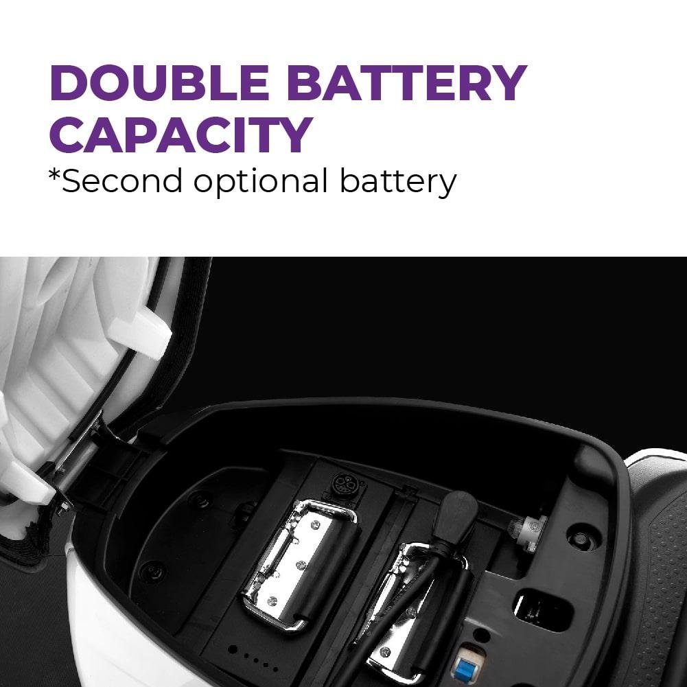 Esta versión de Cargoo está compuesta por 2 baterías de litio con una capacidad de 72V 20AH x 2 (Total 72V 40AH). La gran calidad de sus baterías, así como su tamaño, permiten una autonomía de hasta 130km para un pasajero de 70 kg de peso. Su tiempo de carga de 4 horas permite su disfrute diario sin interrupciones. Además, su vida útil son 1000 ciclos de carga.