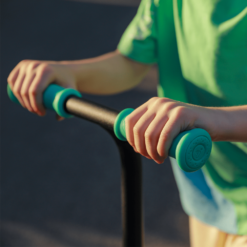 El guardabarros trasero tiene una segunda funcionalidad para cambiar la velocidad del modo de conducción que el niño se encuentra utilizando, golpeando el guardabarros trasero dos veces, mientras el eKickScooter está completamente quieto.