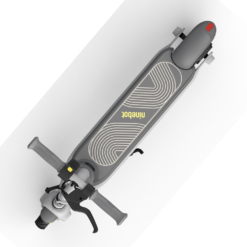 El paquete de baterías de iones de litio, el controlador y el BMS (sistema de gestión inteligente de la batería) están situados por debajo de la base del patinete, bajando de esta manera el centro de gravedad y ofreciendo más estabilidad al conducir.