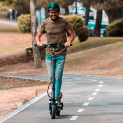 Con una alta autonomía, gracias a su batería de 13.000 mAh 48V recorrerás hasta 45 Km con una sola carga. Sus ruedas de 10 neumáticas, su potente motor Brushless con potencia máxima de 800W (potencia nominal de 500W), su potente foco de led delantero, 4 intermitentes (2 en empuñaduras y 2 en la parte trasera) y luz de freno unido a una batería de alta eficiencia hará que se convierta en un modo de transporte ideal para tu día a día.