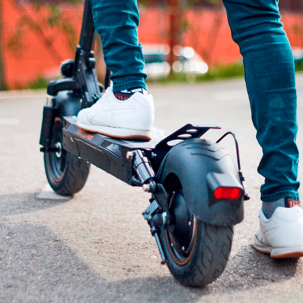 Con intermitentes traseros, neumáticos tubulares resistentes al desgaste y cambios de temperatura en la calzada, suspensión delantera y trasera de doble pistón, display multifunción con 3 modos de velocidad, batería de alta eficiencia con 15.000 mAh, Leds en los laterales, foco frontal / freno trasero y una estructura elegante con diseño personalizado e inigualable.