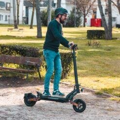 Su motor de 1000W y batería de 18 Ah ofrecen hasta 75 km de autonomía con carga de 8 horas. Con ruedas de 10″», triple frenada, velocidad máxima de 25 km/h y doble suspensión, asegura un viaje suave y seguro. Las luces de alta luminosidad, intermitentes integrados, display frontal y resistencia al agua IPX4 añaden funcionalidad. Disponible en Black y Forest, redefine tu desplazamiento urbano con estilo y tecnología avanzada.