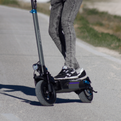 Incorpora una batería con una capacidad de 12.5 Ah 48V, eficiente y estable, con la que podrás disfrutar de una autonomía de hasta 45 Km. Su potente motor de 800W de potencia máxima con selector de 3 velocidades, sus ruedas neumáticas de 10, su potente sistema de frenado por discos de freno, su doble suspensión por amortiguador delantera y trasera y su más que probada fiabilidad, lo hacen ideal para que te olvides de atascos, economices tus viajes, te diviertas y cuides el medio ambiente.