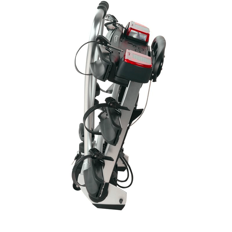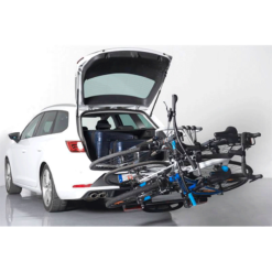 El Justclick 3 es un portabicis para transportar bicicletas. Abatible, plegable y fácil de colocar sobre la bola de enganche. Tiene opción para una cuarta bicicleta con una extensión adicional (no incluida).