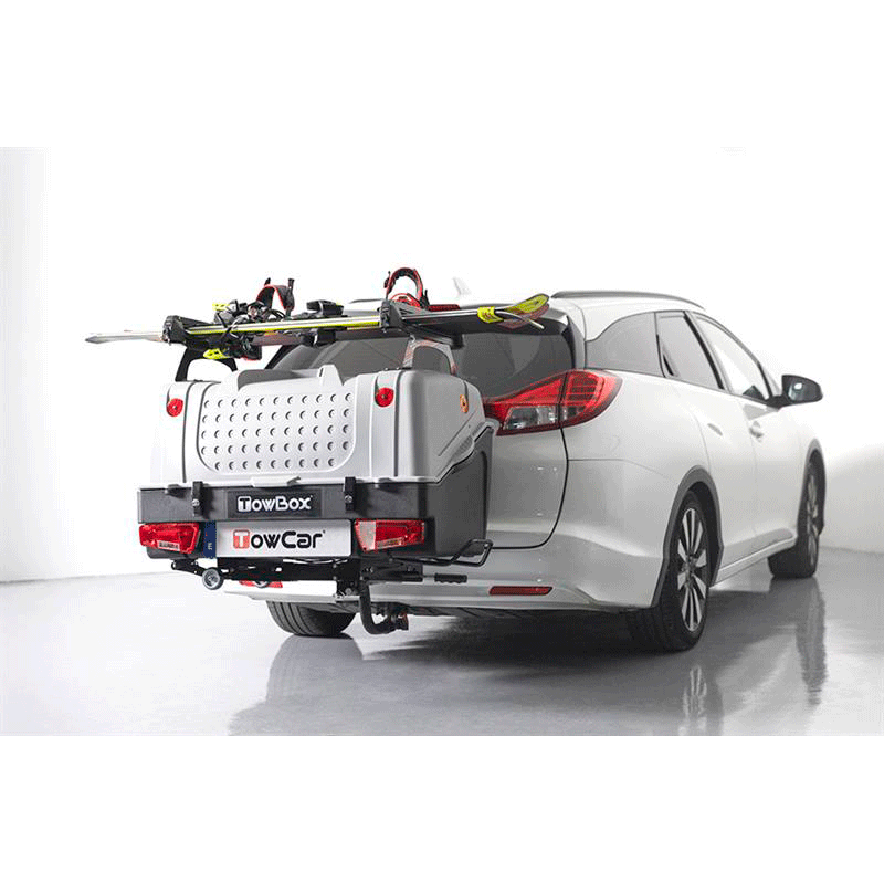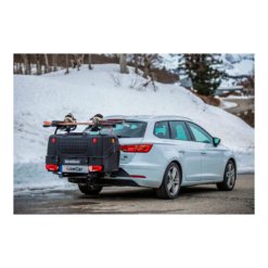 ¡Top Ski con el portaesquis TowBox V1!. Puedes llevar tus esquís, tu patinete eléctrico y todo lo que desees. Es abatible para acceder cómodamente al maletero incluso con el baíl y el portaesquís cargados. El TowBox V1 es un porta esquís que se coloca sobre el TowBox.
